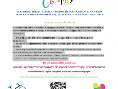 We invite you to visit the website of our project, which aims to increase the creativity and innovation in everyday school practices in schools in four European countries (Hungary, Italy, the Netherlands and Romania) by: